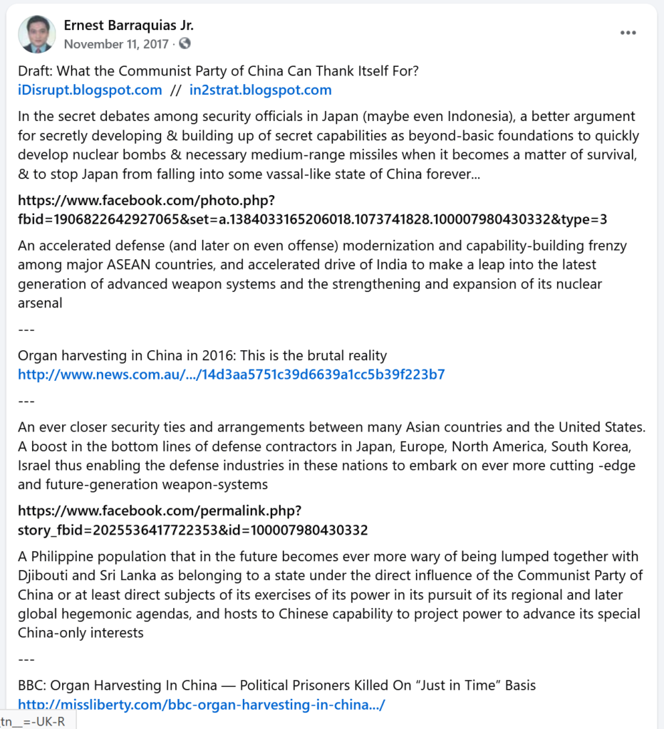 This post was about the basic protective measures being afforded an American soldier, then accused of a crime, that Philippine communists were crying so loud and wanted to be riotous about yet not exposing (they had a mighty propaganda machinery in both new and old media then) the ultra-luxurious lives of convicted drug lords later revealed to have been running illegal drugs operations even while in jail. There were news reports, too, that said CCP-China sanctioned the flooding of instantly-addictive illegal drugs “meth” to target democratic societies not allied with the communist dictators of China, to undermine their societies from within. The Philippines is, for CCP-China, a hopelessly pro-American pro-Western society, and so China would not want a prosperous and peaceful U.S.-allied country it could not as easily undermine, weaken from within, for example by supporting separatists, rebel groups and organized crimes corrupting entire local societies.